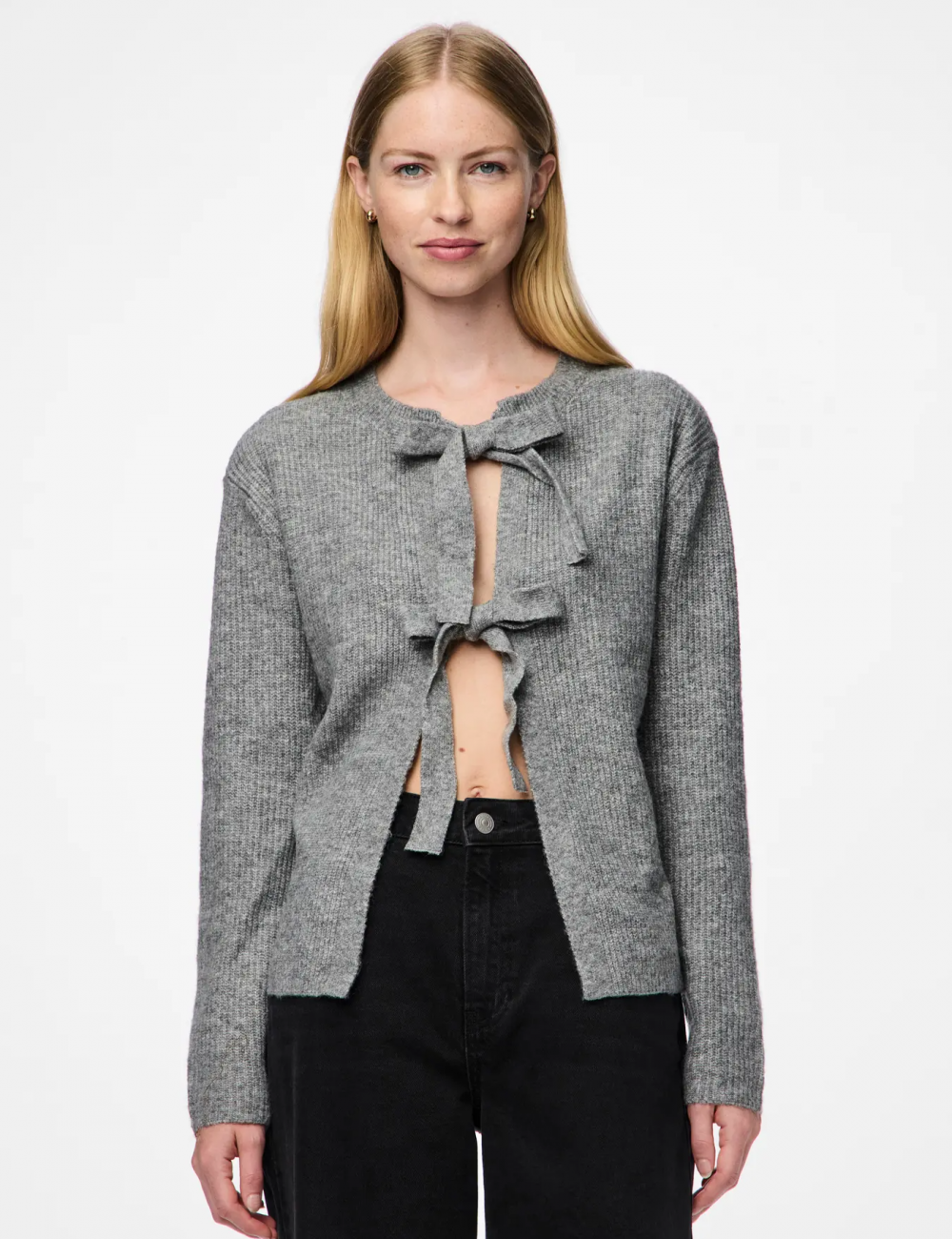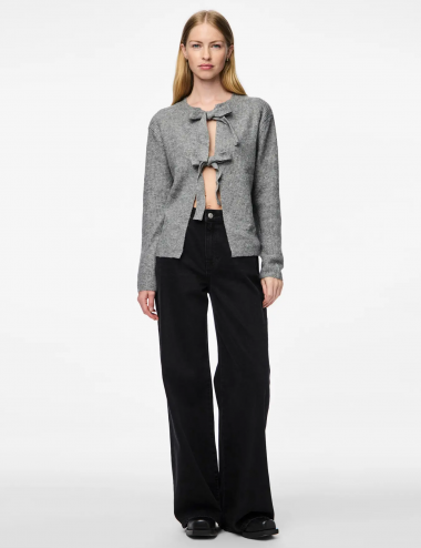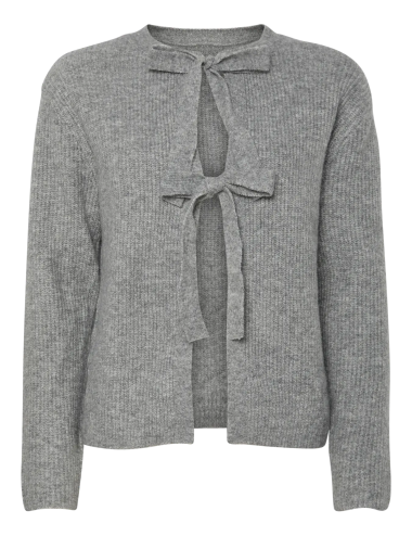 Chaqueta gris de punto con detalle de cierre de lazadas